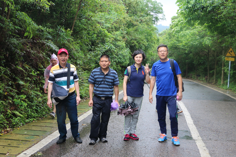 首夏猶清和,芳草亦未歇。深圳的五月,陽光正好,微風(fēng)不燥。中航裝飾集團(tuán)的小伙伴們就在這惠風(fēng)和暢的天氣里向深圳最高峰——梧桐山發(fā)起了挑戰(zhàn)。雖然上午剛到山底就飄了點(diǎn)小雨,但大家登山的熱情不減,情緒高昂。石英董事長更是一馬當(dāng)先,帶領(lǐng)大家沿著逶迤盤旋的山路,穿過蔭翳的林木,向山頂一路攀登。雖然道路曲折漫長,但是沿途風(fēng)景優(yōu)美,為增加本次活動(dòng)的趣味性與挑戰(zhàn)性,我們更是事先在沿途放置了一些卡紙,在活動(dòng)中增加了“尋寶”游戲,讓大家在爬山的過程中,體會(huì)尋寶的樂趣。大家樂此不彼,在不斷尋找的過程中似乎也忘記了一路攀登的辛苦。一路上,大家相互扶持鼓舞,以堅(jiān)定的信念、頑強(qiáng)的毅力不斷往上攀登,挑戰(zhàn)每一個(gè)臺(tái)階,每一段路途,朝著山頂目標(biāo)勇敢的前進(jìn)。當(dāng)站在鵬城第一峰的山頂,迎著晨暉,眺望遠(yuǎn)方,因天氣原因,能見度不高,少了海闊天空,一覽眾山小之感,但頗有鳳兮來儀、飄飄欲仙之意。稍事休息后,我們就開始下山了,下山途中大家也是互相扶持,秉持著不落下一個(gè)隊(duì)友的原則,順利返回山底,在山底的農(nóng)家樂餐館用了晚餐。