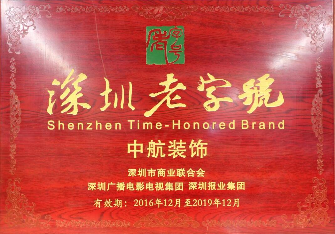 “深圳老字號”承載著深圳城市發(fā)展的歷史記憶,彰顯了伴隨改革開放成長起來的深圳企業(yè)發(fā)展歷程,它的背后有著強烈的深圳色彩和價值認同。其評選參照中華老字號專業(yè)委員會的相關標準,遵循“歷史、特色、形象、影響”四大評選標準,經過實地考察、網絡投票等進行綜合考評。最終,中航裝飾作為老牌裝飾企業(yè),憑借22年的發(fā)展歷史和良好的美譽度及廣泛的知名度,榮獲“深圳老字號”的榮譽稱號,是真正的實至名歸!